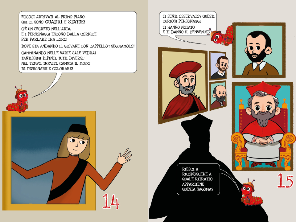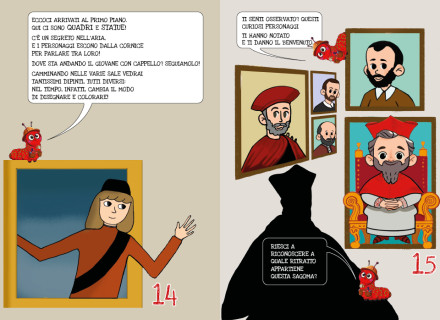 I due percorsi possono essere svolti insieme o separatamente. Per facilitare l’adulto, sono presenti all’interno del libretto le mappe del museo con l’indicazione del percorso da seguire e la collocazione delle opere coinvolte nella storia.