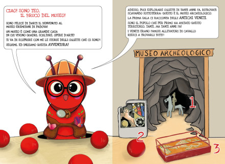 L'albo illustrato "Scopri il Museo con Teo" è stato pensato per aiutare i bambini dai 3 ai 6 anni ad esplorare il Museo Eremitani di Padova. La visita attraverso questo strumento è immaginata come un’avventura, letta dagli adulti, in cui i piccoli sono accompagnati dalla mascotte Teo il bruco del Museo.